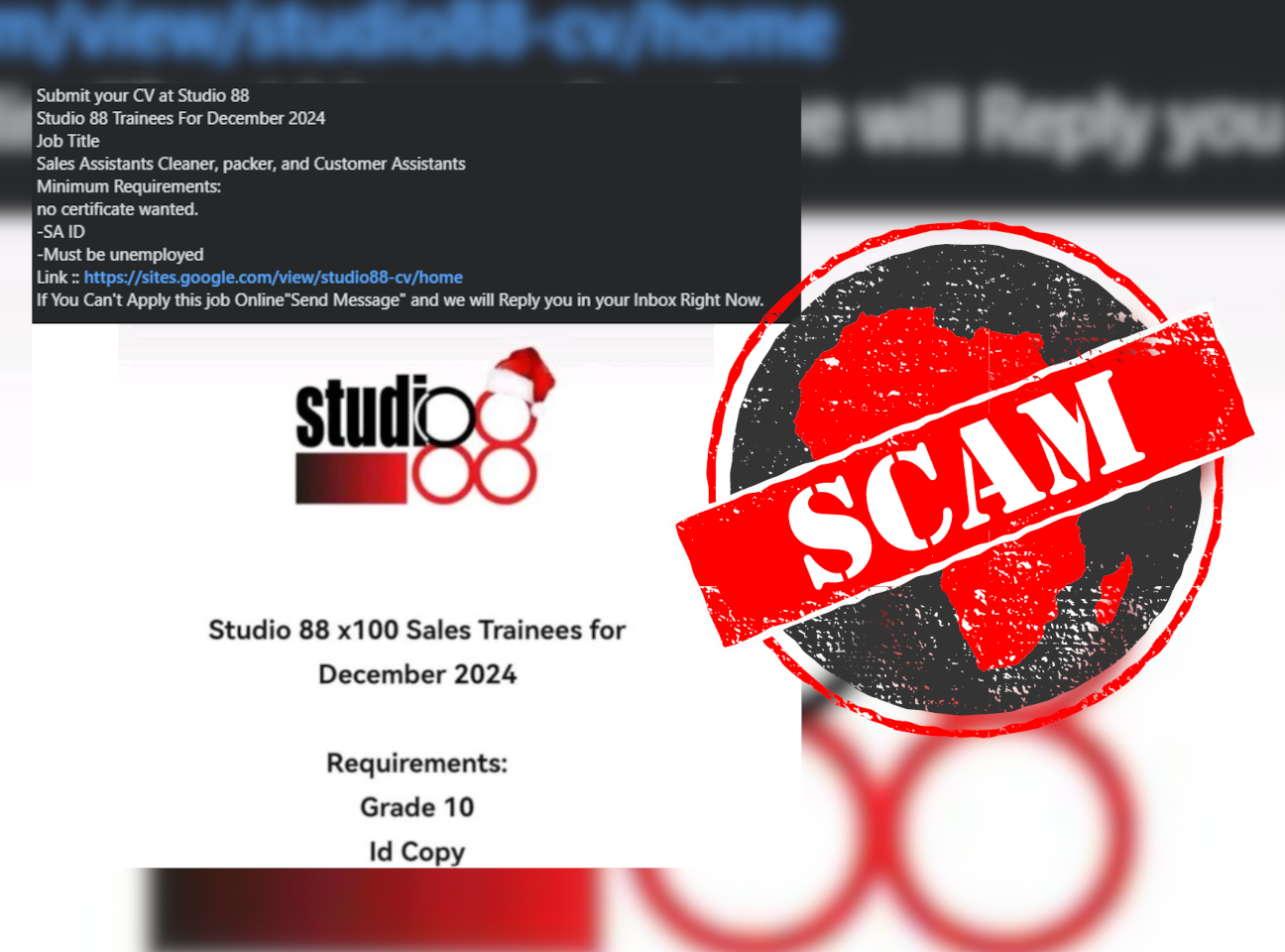 IN SHORT: According to posts doing the rounds on Facebook, Studio 88 is looking for job applications through unverified links and inboxes. But be wary, these job adverts are scams.