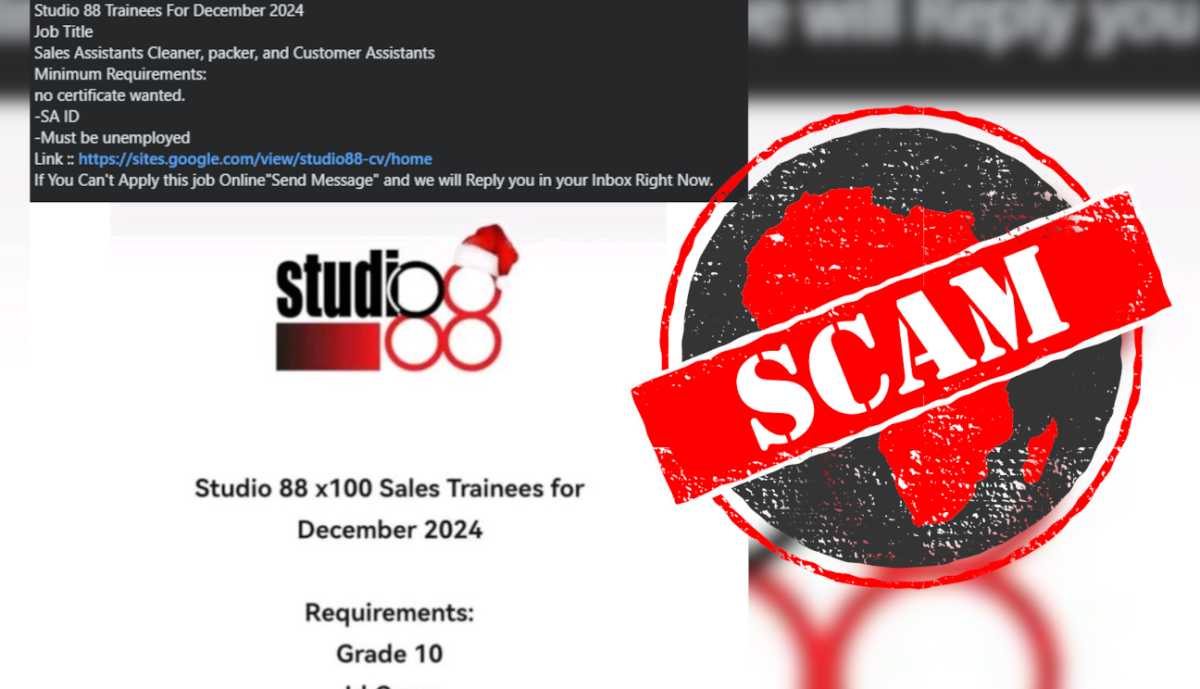 “Submit your CV at Studio 88,” suggests a Facebook post doing the rounds on Facebook in South Africa.