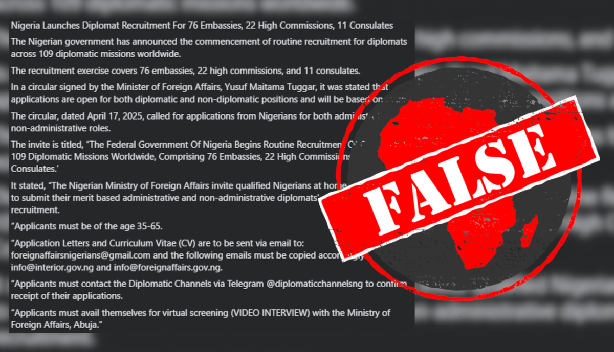 There has not been any mention of the recruitment in any of Nigeria’s credible news outlets, nor on the ministry’s website and official social media handles, as might be expected.