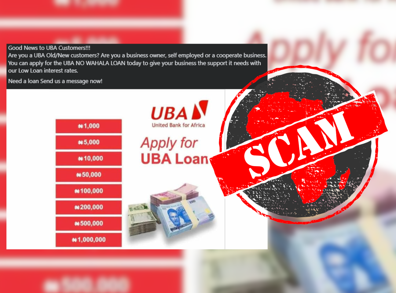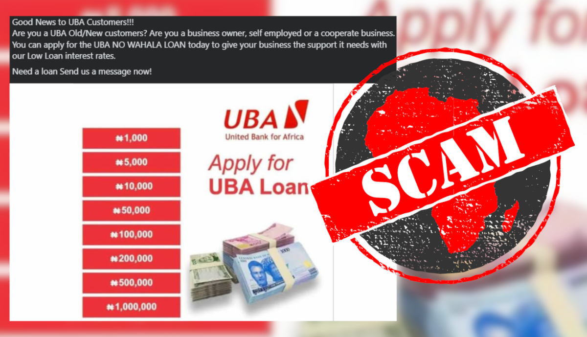 IN SHORT: Multiple Facebook accounts are claiming to offer loans from the United Bank for Africa to Nigerians. But steer clear – the offers are fake.