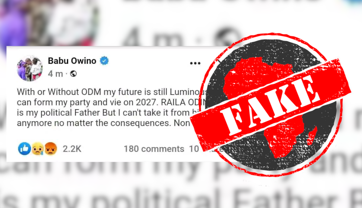 On 2 August, Owino flagged the post in question as fake on his official Facebook page.