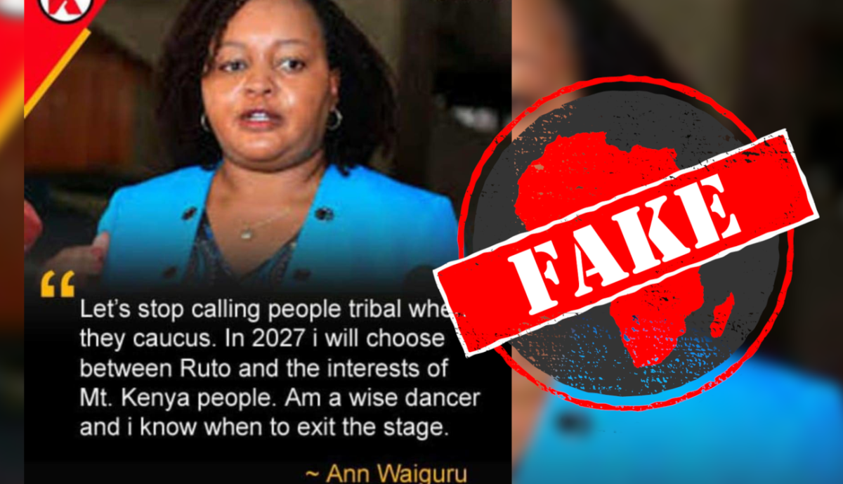 IN SHORT: This graphic claims Anne Waiguru, the Kenyan governor and close ally of president William Ruto, plans to chart her own path when the country votes in 2027. But it is fabricated.
