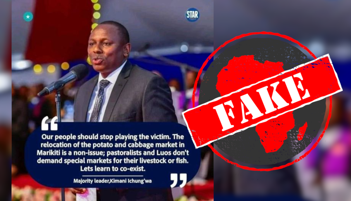 IN SHORT: A graphic quoting Kenyan MP Kimani Ichung'wa on the relocation of the flashpoint Marikiti market has been circulating, suggesting that he dismissed concerns about the move. But the evidence for this has been fabricated.