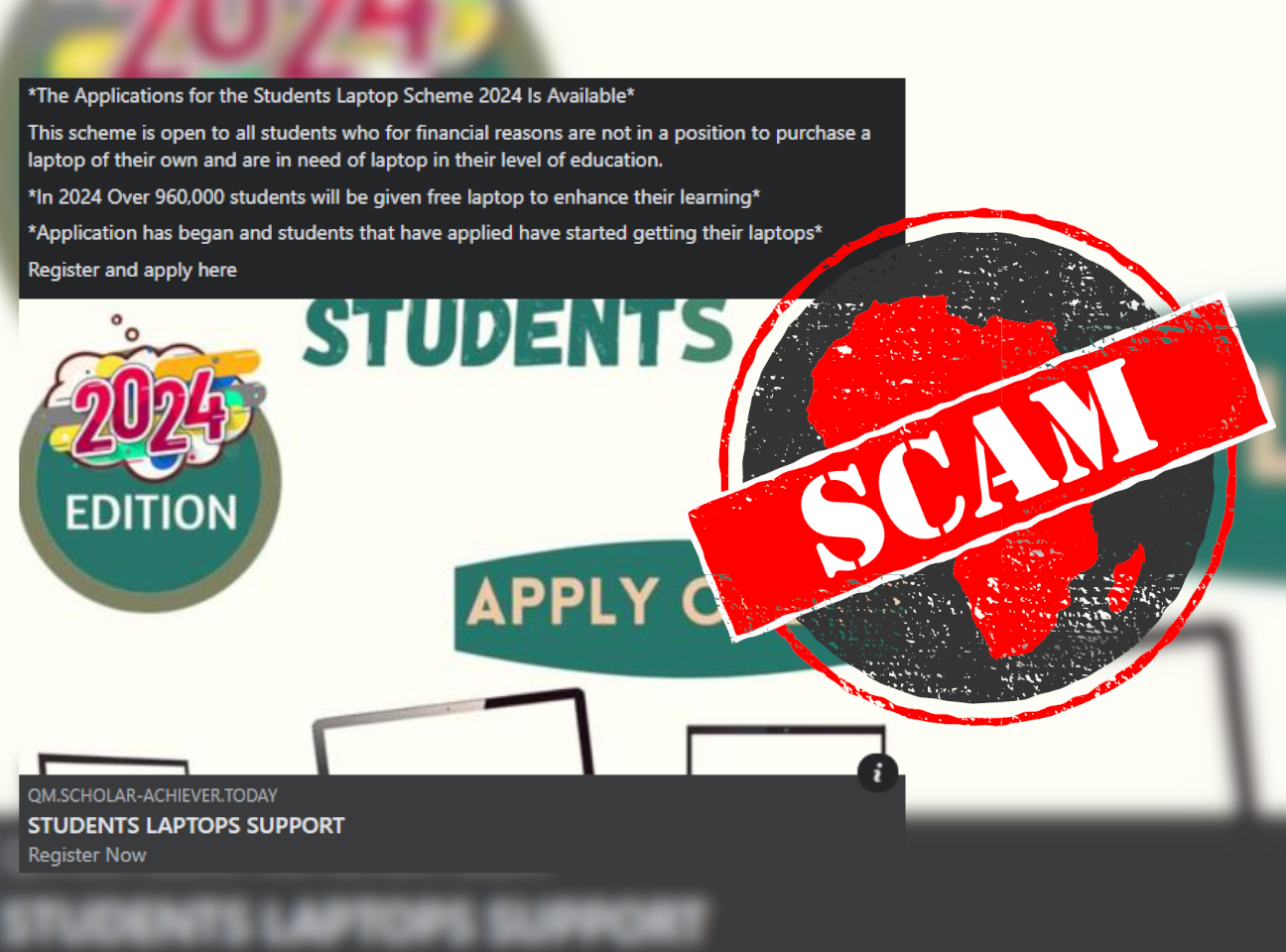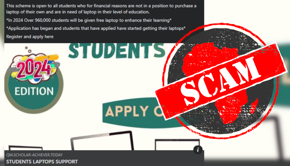 The message also says: “In 2024 Over 960,000 students will be given free laptop to enhance their learning. Application has began and students that have applied have started getting their laptops. Register and apply here.”
