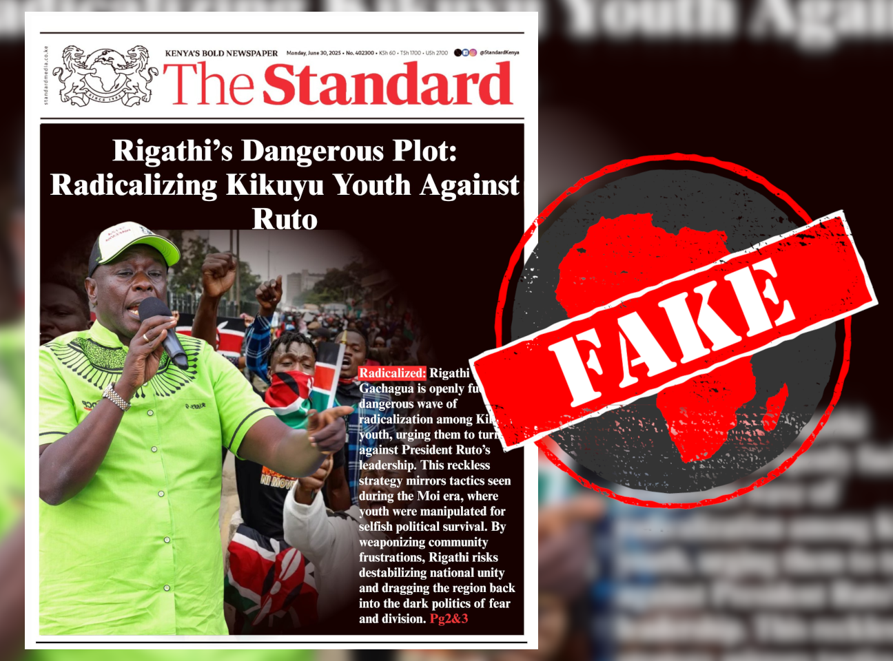 Kenya’s former deputy president Rigathi Gachagua is radicalising young members of the Kikuyu community in an attempt to fracture national unity for political gain. At least, that’s according to what appear to be two front pages of Kenya’s Standard newspaper.