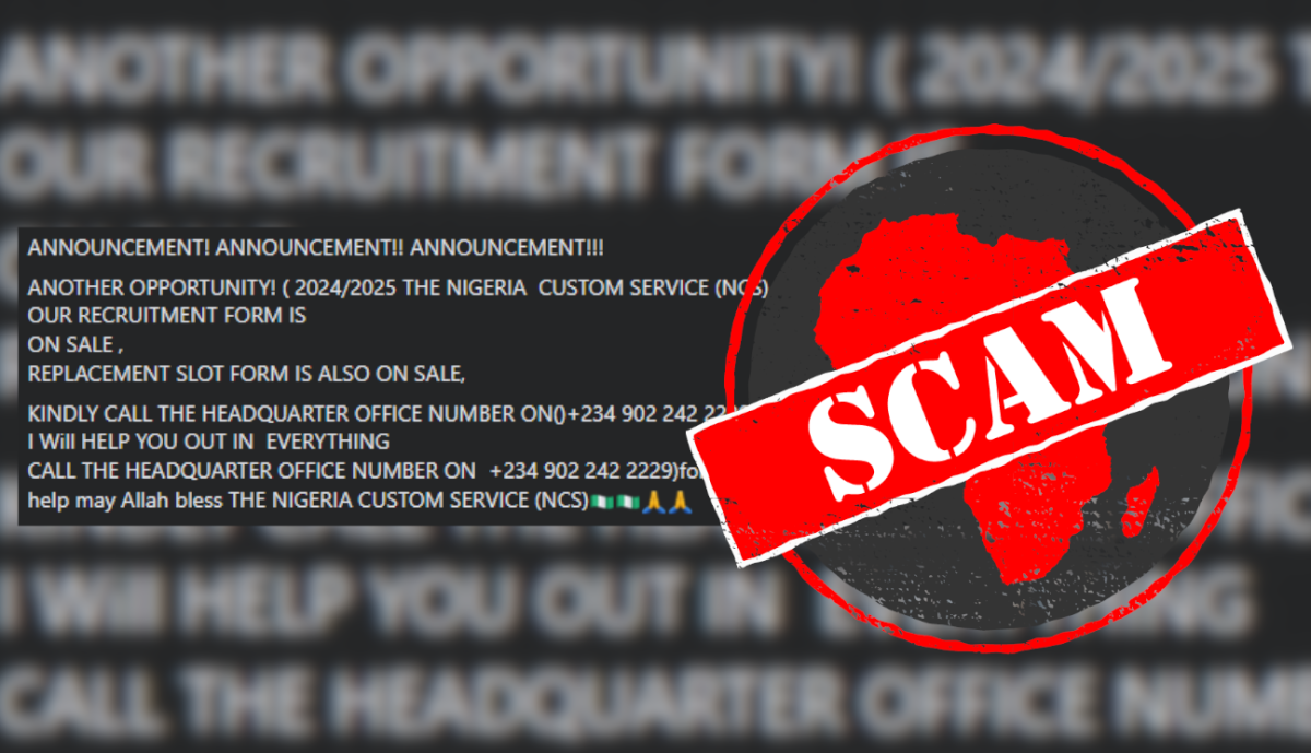 IN SHORT: The Nigeria Customs Service has warned that it is not recruiting. Posts online claiming otherwise are out to scam people.