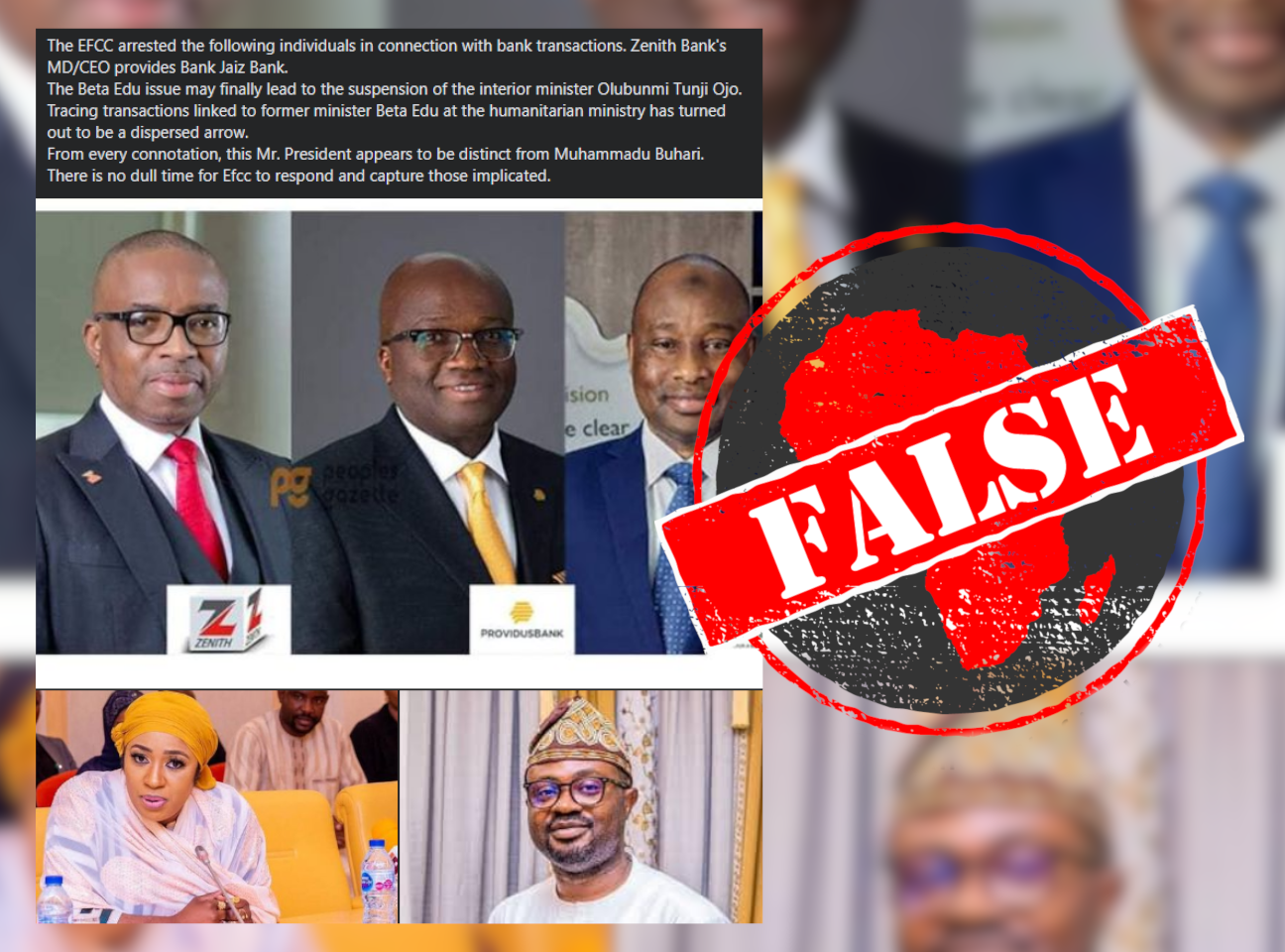 But several posts on Facebook, including here, here, here, here and here, claim that the directors of Jaiz and Zenith were arrested in connection with the alleged fraud.