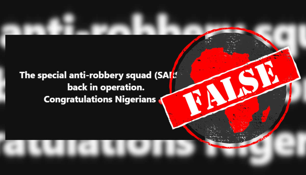 A post circulating on Facebook in Nigeria reads: “The special anti-robbery squad (SARS) is back in operation. Congratulations Nigerians.”