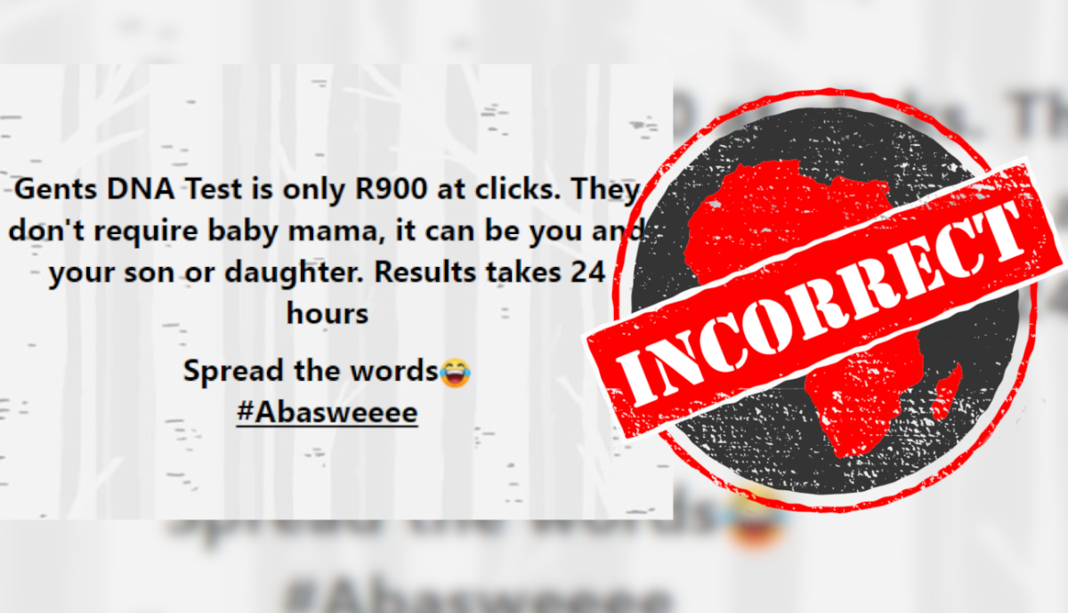 A much-shared post on Facebook tells men that for just R900, they can get a DNA test done at Clicks, a South African retailer.