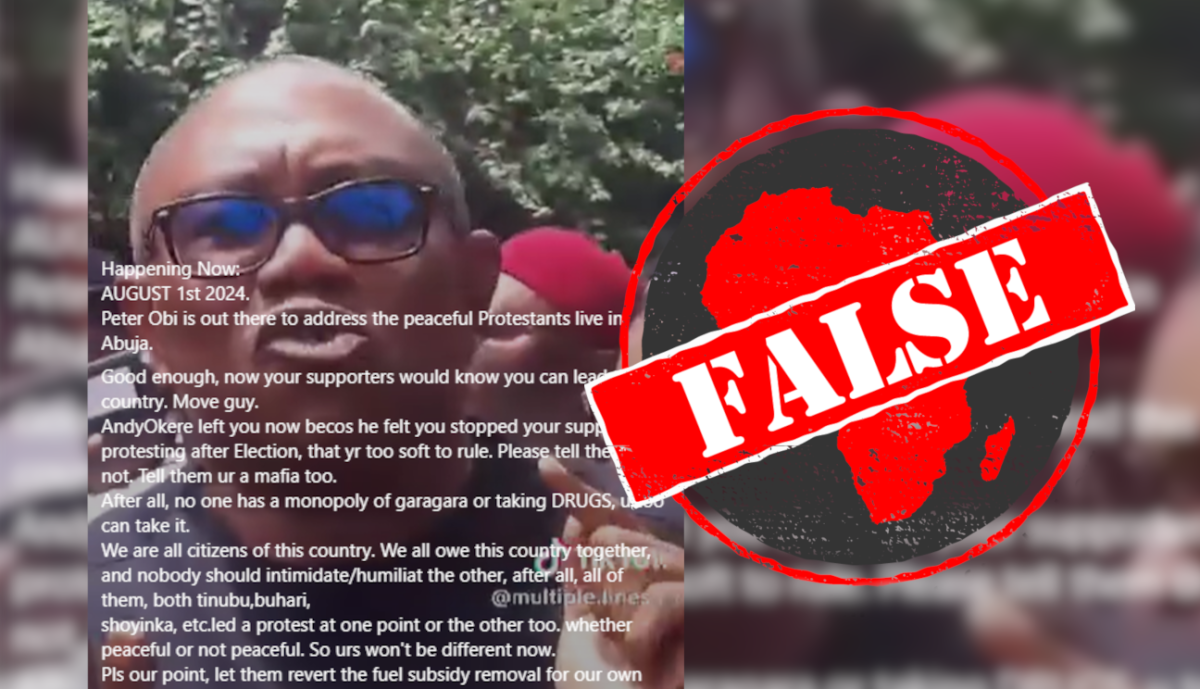 IN SHORT: Several social media posts claim that Labour Party leader Peter Obi has led anti-government protests in Abuja in August 2024. But the video used as evidence was taken months before the protests began.