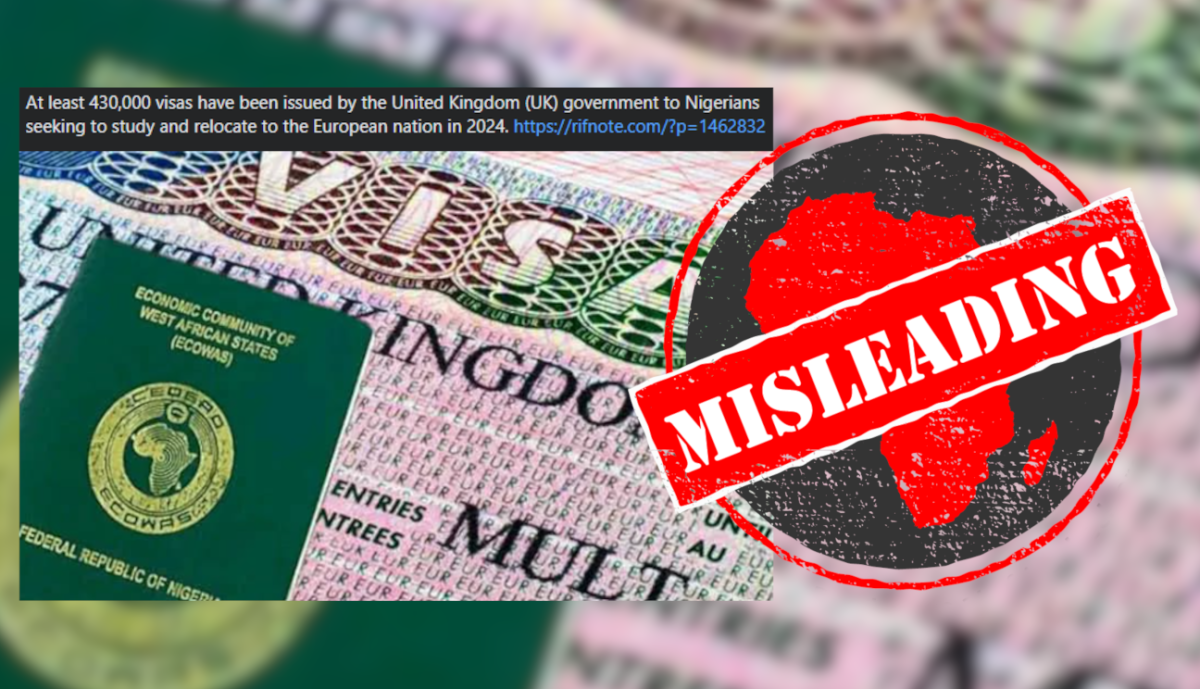 The claim that the UK issued 430,000 visas to Nigerians in the first seven months of 2024 is false. Circulating such a claim is likely to mislead many people and have a negative impact on policy.