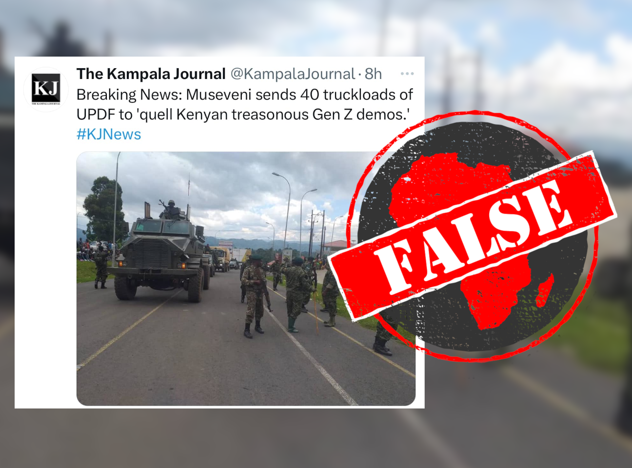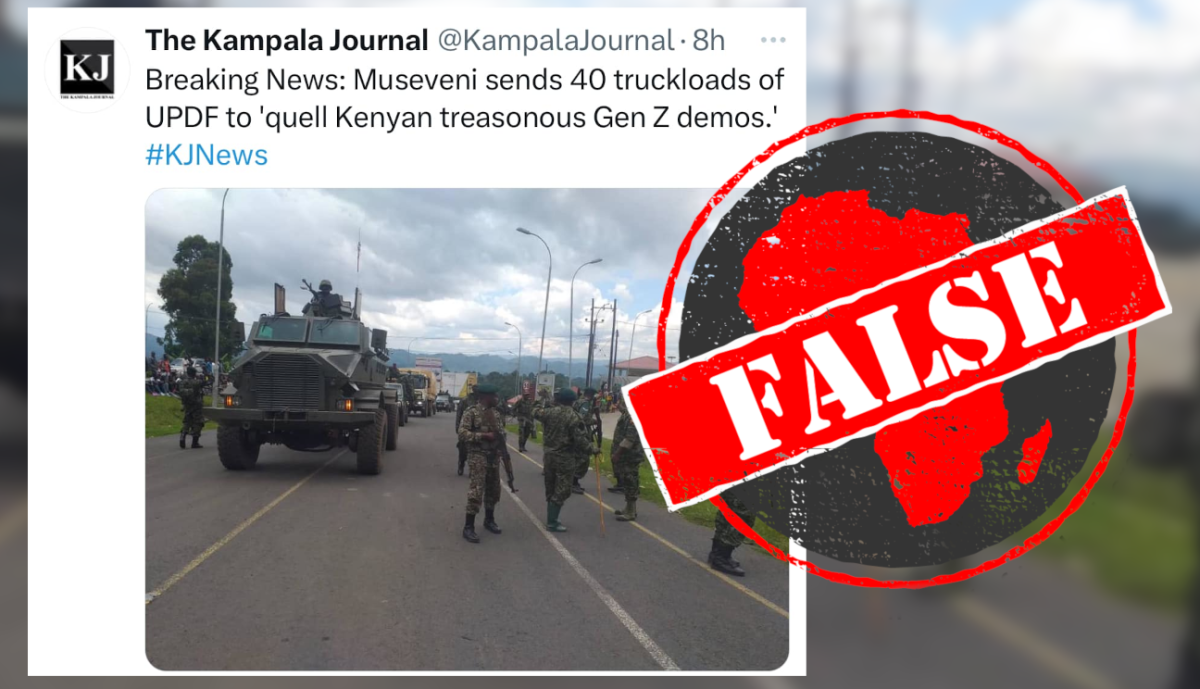 Ugandan president Yoweri Museveni sent “40 truckloads” of troops to quash the anti-tax protests in neighbouring Kenya. That’s the claim in the caption of a photo circulating on social media since 25 June 2024.
