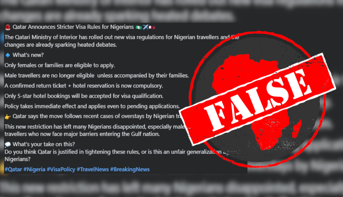 The viral claim appears on several Facebook posts, some including a document which claims to list the new requirements for Nigerians applying for visas to Qatar, a small country on the Arabian Peninsula.