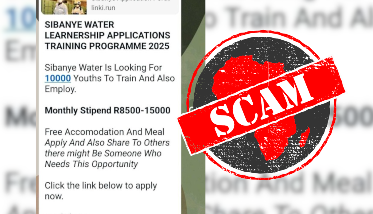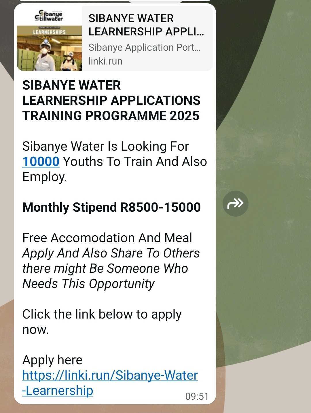 A message sent to Africa Check by subscribers to our WhatsApp lines claims that a company called “Sibanye Water” is offering learnership and training programmes for 2025.