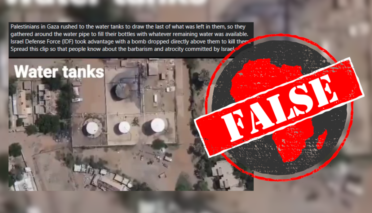 One of the captions accompanying the 30-second video clip reads: “Palestinians in Gaza rushed to the water tanks to draw the last of what was left in them, so they gathered around the water pipe to fill their bottles with whatever remaining water was available. Israel Defense Force (IDF) took advantage with a bomb dropped directly above them to kill them. Spread this clip so that people know about the barbarism and atrocity committed by Israel.”