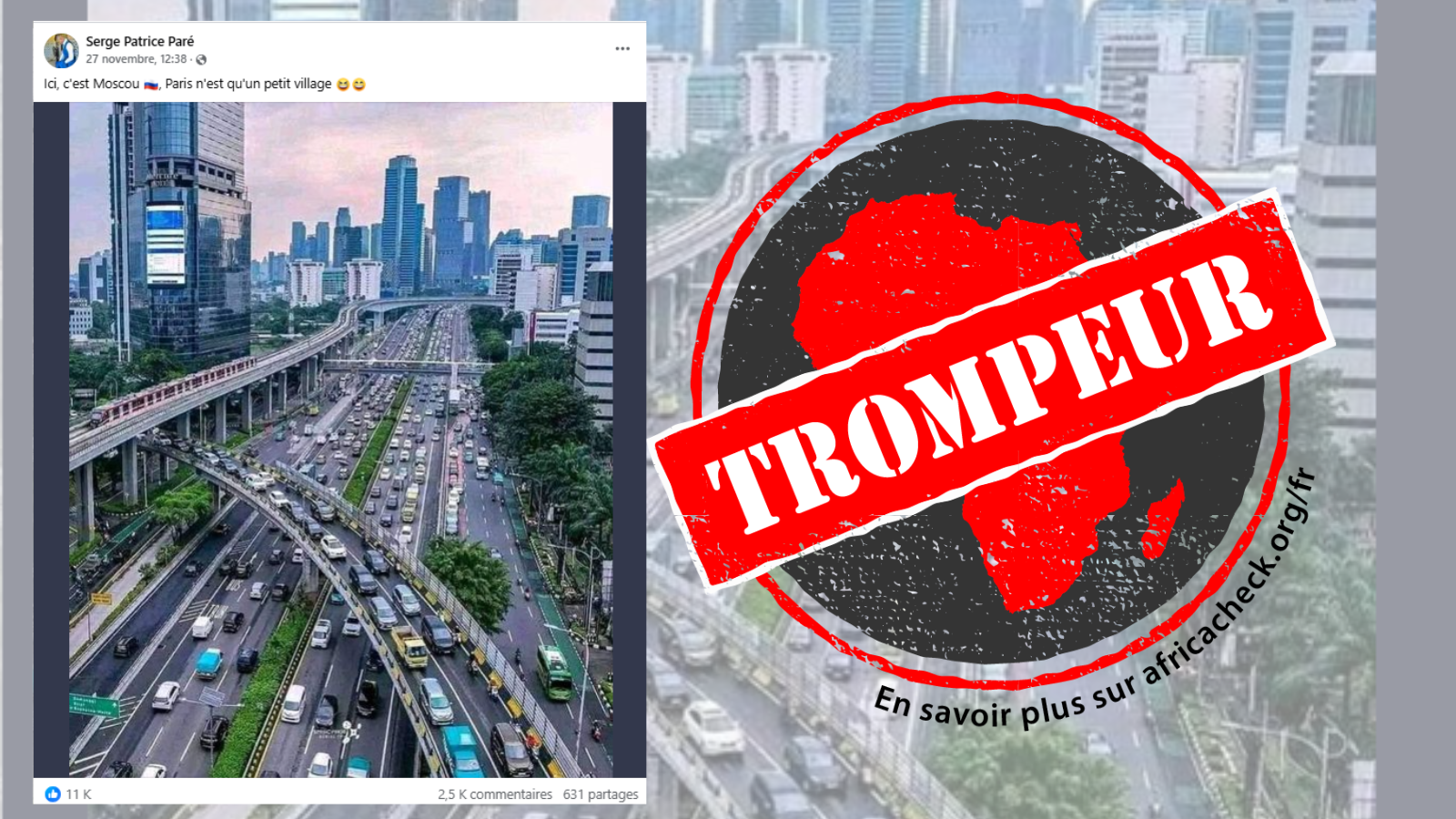 Sur Facebook, la page Serge Patrice a publié le 27 novembre 2024 une photo sur laquelle on peut voir une grande métropole avec ses ponts suspendus et ses gratte-ciel. « Ici, c'est Moscou, Paris n'est qu'un petit village », est-il écrit sur l’intitulé de la publication.