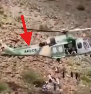 En observant cette vidéo de plus près, nous avons pu voir qu’à partir de la onzième seconde, un zoom a été fait sur l’hélicoptère. Cette manœuvre nous a permis de relever le numéro d’immatriculation A40-CB sur la poutre de queue de l’engin.