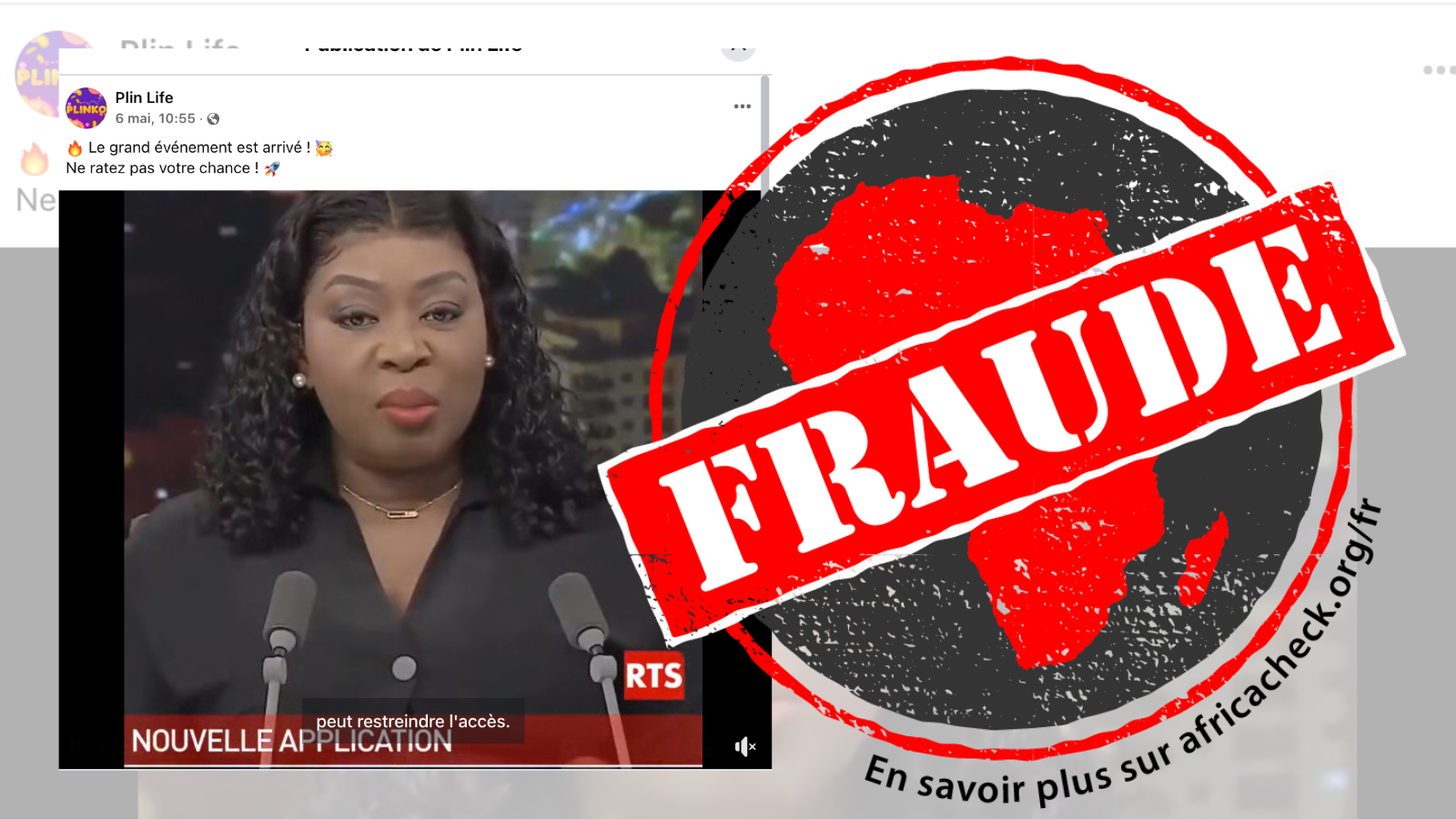 Sur Facebook, une page appelée Plin Life a publié le 6 mai 2025 une vidéo faisant la promotion d'une application prétendant faire gagner beaucoup d'argent aux Sénégalais. La séquence, qui dure 38 secondes, montre différents extraits censés provenir du journal de la chaîne nationale, la Radio-Télévision Sénégalaise (RTS) tout en suggérant que celle-ci fait la promotion de cette application.