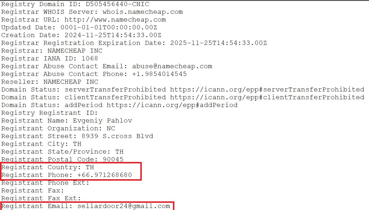 Une recherche sur le nom de domaine de ce site avec l’outil Domain dossier permet de voir que son titulaire est basé en Thaïlande. Le numéro de téléphone (+66.971268680) et le courriel ([email protected]) utilisés pour créer le site sont aussi impliqués dans la conception d’autres sites similaires de jeu jugés frauduleux (1, 2, 3).